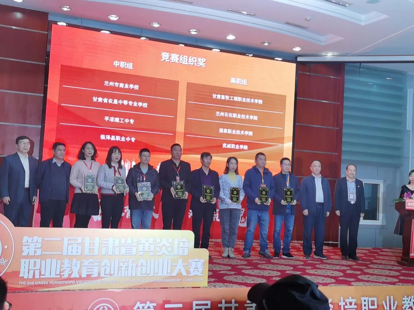 2020年10月15日,第二届甘肃省黄炎培职业教育创新创业大赛在兰州石化职业技术学院举行,经过一天激烈的现场比拼,最终,张永久老师指导的项目《砂砾地食用桑芽菜原生态栽培与销售策略》获得银奖;王权朝老师指导的项目《敦煌岩彩矿物颜料研发与推广》、董轩老师指导的项目《清泉羊肉自热食品研发与推广项目》荣获铜奖,我校荣获优秀组织奖。