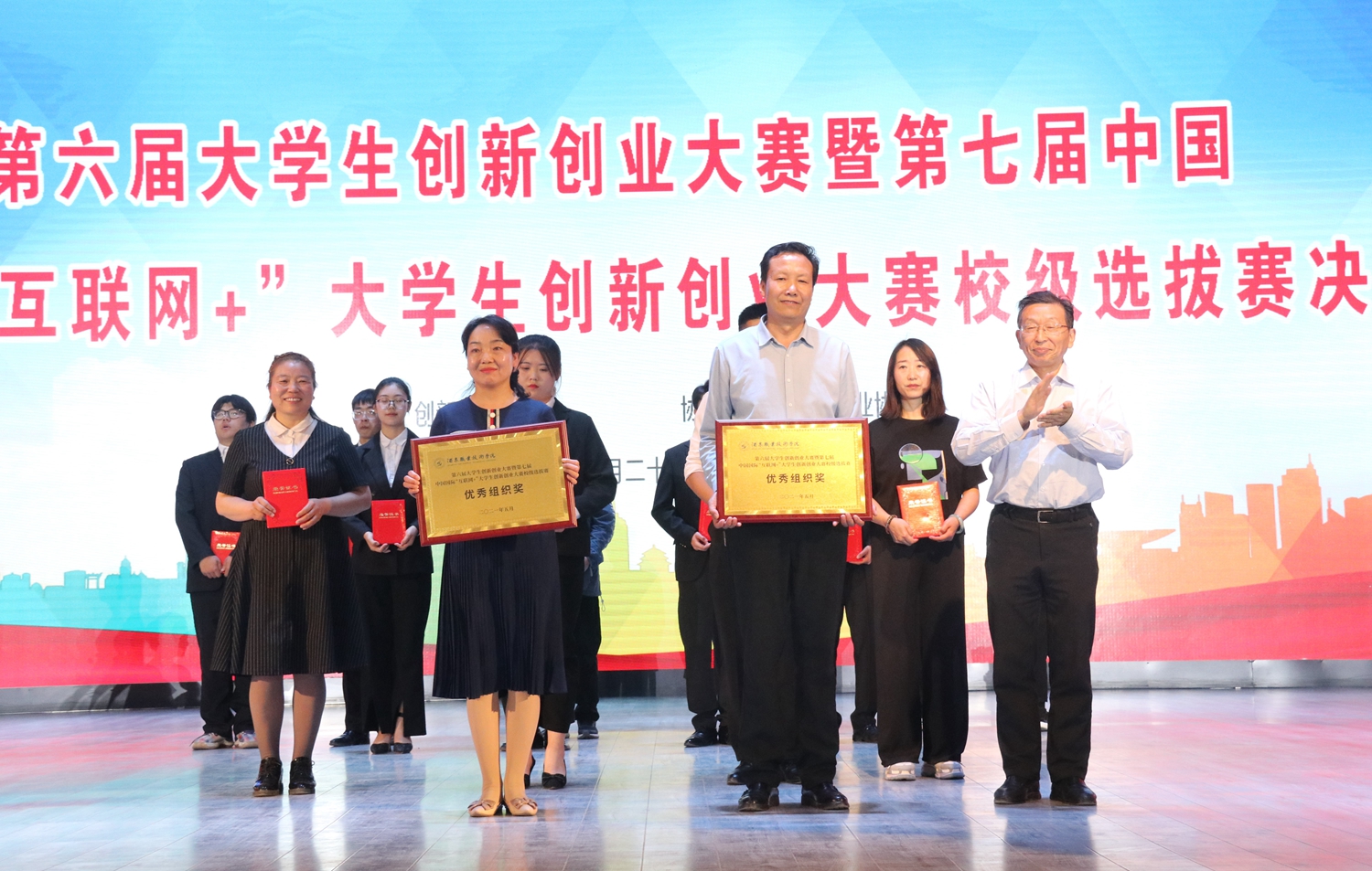 2021年5月27日下午,学校第六届大学生创新创业大赛决赛暨第七届中国国际互联网+大学生创新创业大赛校级选拔赛,在胡杨文化活动中心举行。学校党委书记、校长易志军,党委委员、副校长薛仰全出席活动。