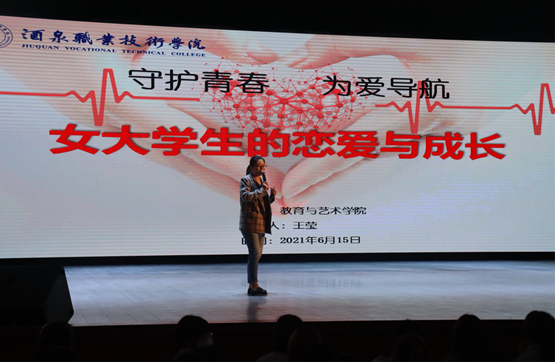 为使促进大学生更理性地面对成长中的情感及恋爱中的困惑,树立正确的恋爱观,6月15日下午,我院王莹老师在胡杨文化活动中心主讲《“守护青春*为爱导航”女大学生的恋爱与成长》为主题的讲座。讲座由团委书记袁霓主持,19级和20级近1600名学生参加。