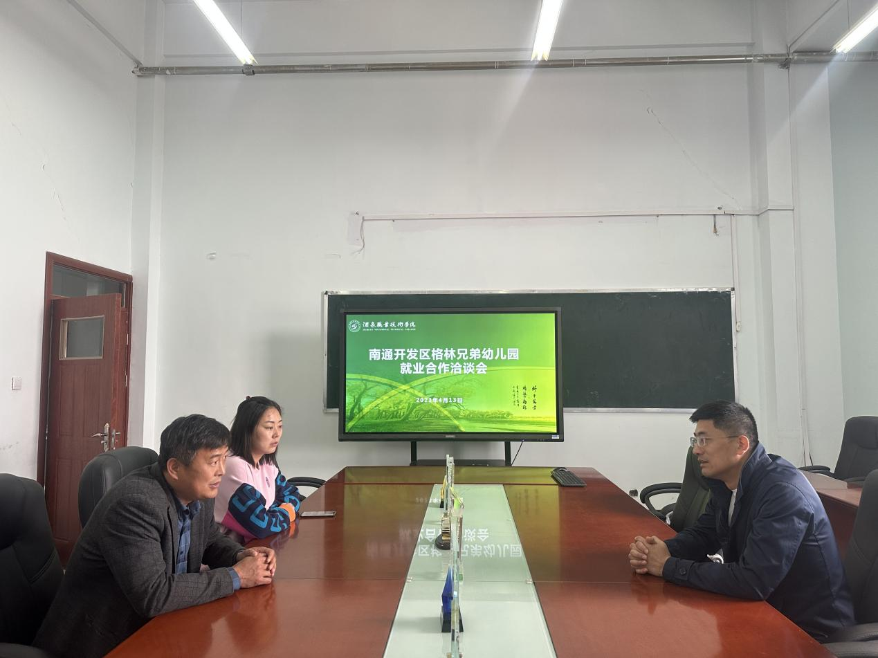 为贯彻落实高校毕业生就业工作的决策部署,为毕业生开拓更多更优质的就业岗位和机会。4月13日上午,教育与艺术学院与江苏省南通开发区格林兄弟幼儿园在行知楼704会议室召开了校企合作洽谈会。教育与艺术学院党支部书记、院长赵多生,副院长张冬琴参加了此次洽谈会。