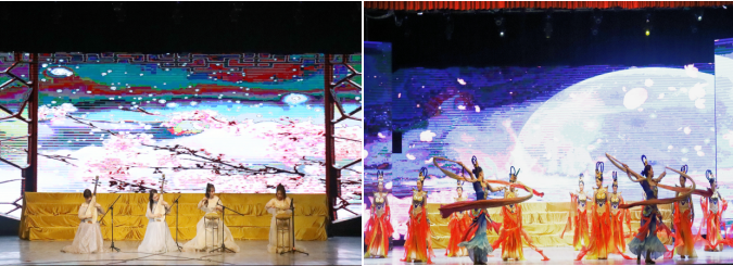 郭真老师清澈明净的琴声潺潺流动,让听众沉浸在“完美世界”中。由殷蓉、张璐、李思语、康雅菲四位老师合奏的曲目《琵琶语》如泣如诉,将听众带入一种缠绵悱恻、欲说还休的境界。琵琶伴奏的敦煌舞《佳人伴孤灯》,呈现了美轮美奂、气势恢宏的敦煌盛景。