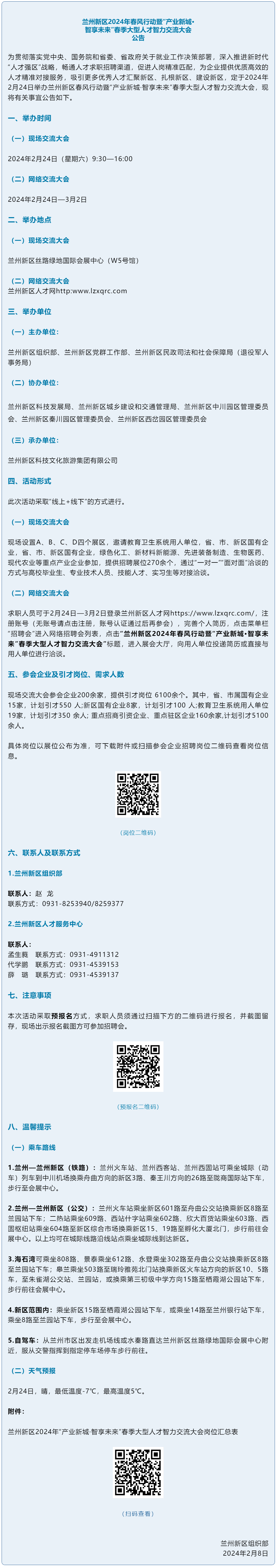 兰州新区2024年春风行动暨“产业新城·智享未来”春季大型人才智力交流大会公告