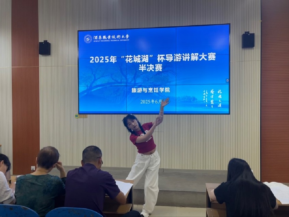 为提升学生专业技能,展示教学成果,2025年6月4日,旅游与烹饪学院成功举办2025年“花城湖”杯导游讲解大赛半决赛。比赛吸引了众多旅游管理专业和研学旅行管理与服务专业的学生参与,经初赛选拔的24名选手分为自选景点导游讲解和才艺运用两部分,进行了自我展现与切技艺磋。
