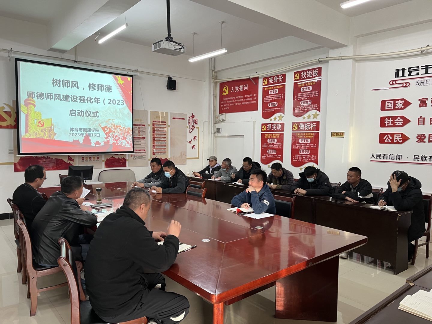 教育大计,教师为本;教师大计,师德为魂,为进一步加强我院师德师风建设水平,落实师德师风建设有关要求,不断推进学院各项工作高质量发展。3月16日,体育与健康学院在体育馆会议室举行“师德师风建设强化年”启动仪式,全体教师参加了启动仪式,活动由党支部副书记马鑫主持。