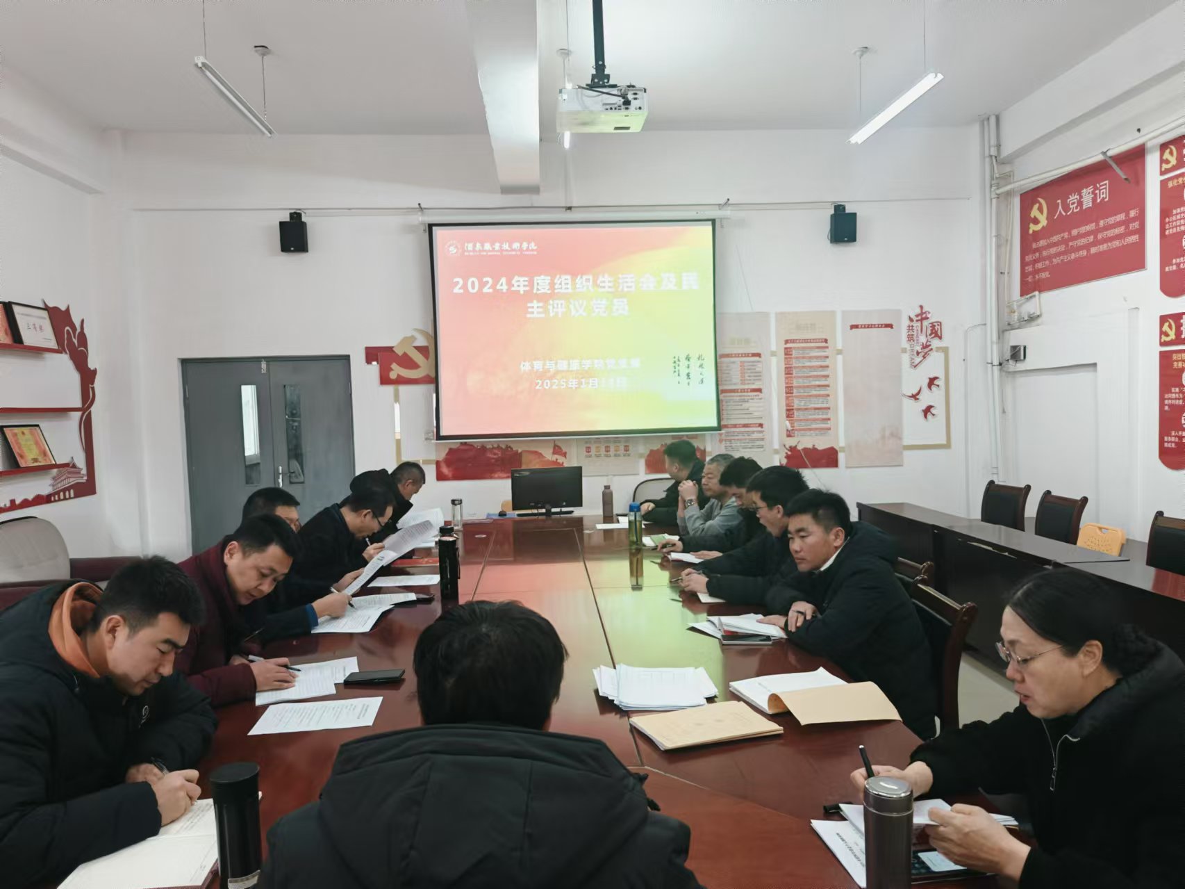 2025年1月14日下午,体育与健康学院召开了2024年度组织生活会和民主评议党员。党支部书记周小刚同志主持会议,全体党员、预备党员参加了会议,学校党委副书记王立智同志亲临现场指导。
