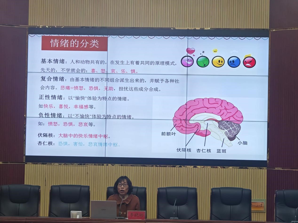 李老师以其丰富的实践经验和深厚的理论功底,为学生们带来了一场精彩纷呈的讲座。她首先从情绪的定义和分类入手,详细阐述了情绪的产生机制、影响因素以及情绪对个人行为和心理健康的重要作用。接着,她深入剖析了压力的来源和类型,指出了压力对个人生理、心理和行为的多方面影响。