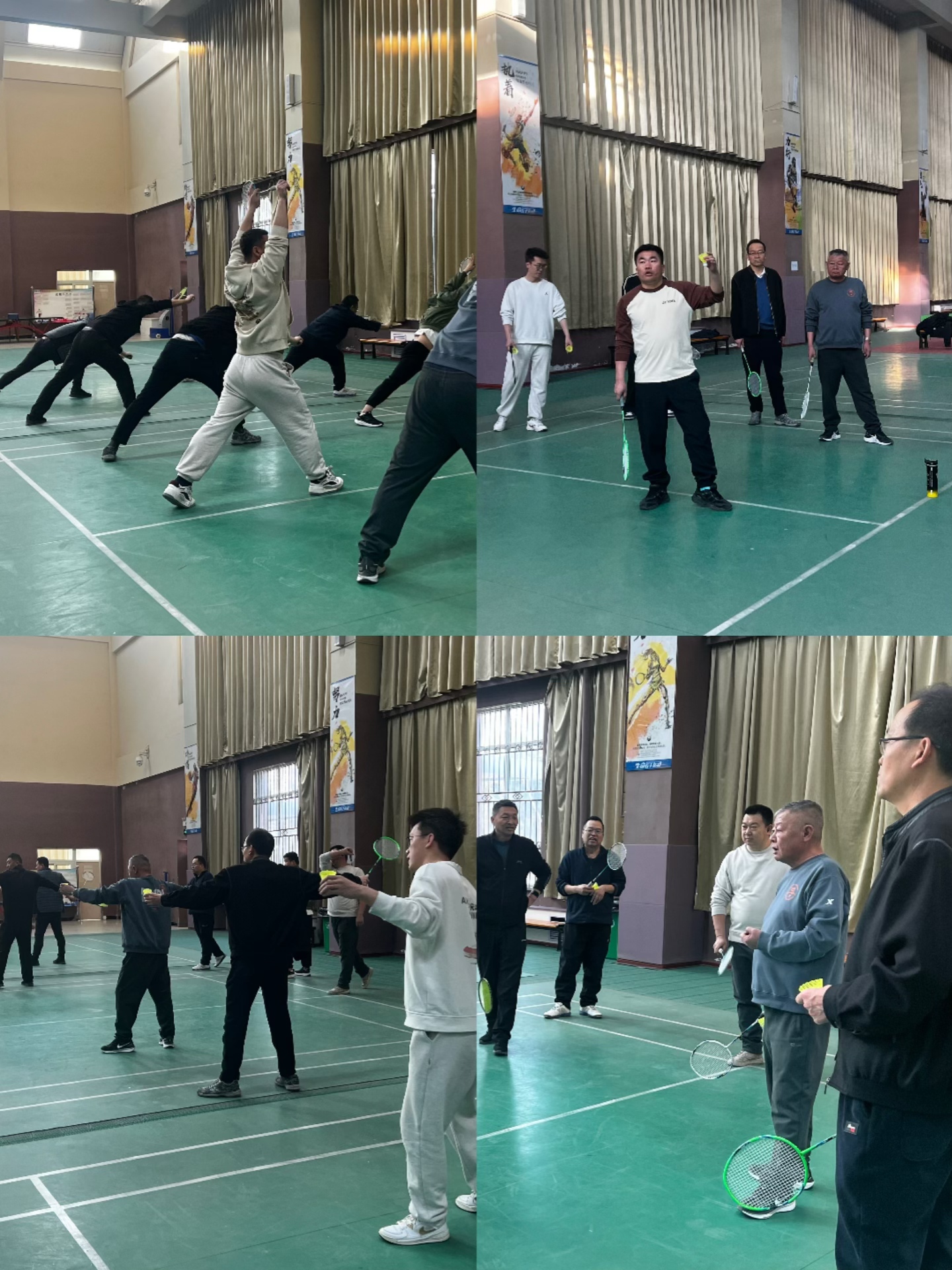 羽毛球技能培训中,培训老师韩大锋认真讲解示范,其他教师全情投入,从发球、接球的精细研习到整体动作的流畅呈现,为校园羽毛球运动发展注入强劲动力。