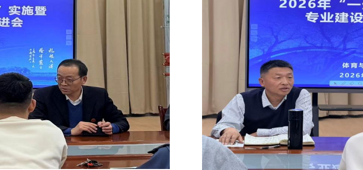 2026年1月14日,体育与健康学院召开“2026年“一生一技”教学工作暨“五金”建设研讨部署会议。会议由学院副院长崔瑾忠主持,学院党支部书记周小刚、党支部副书记、院长马鑫、教研室主任及骨干教师参加。