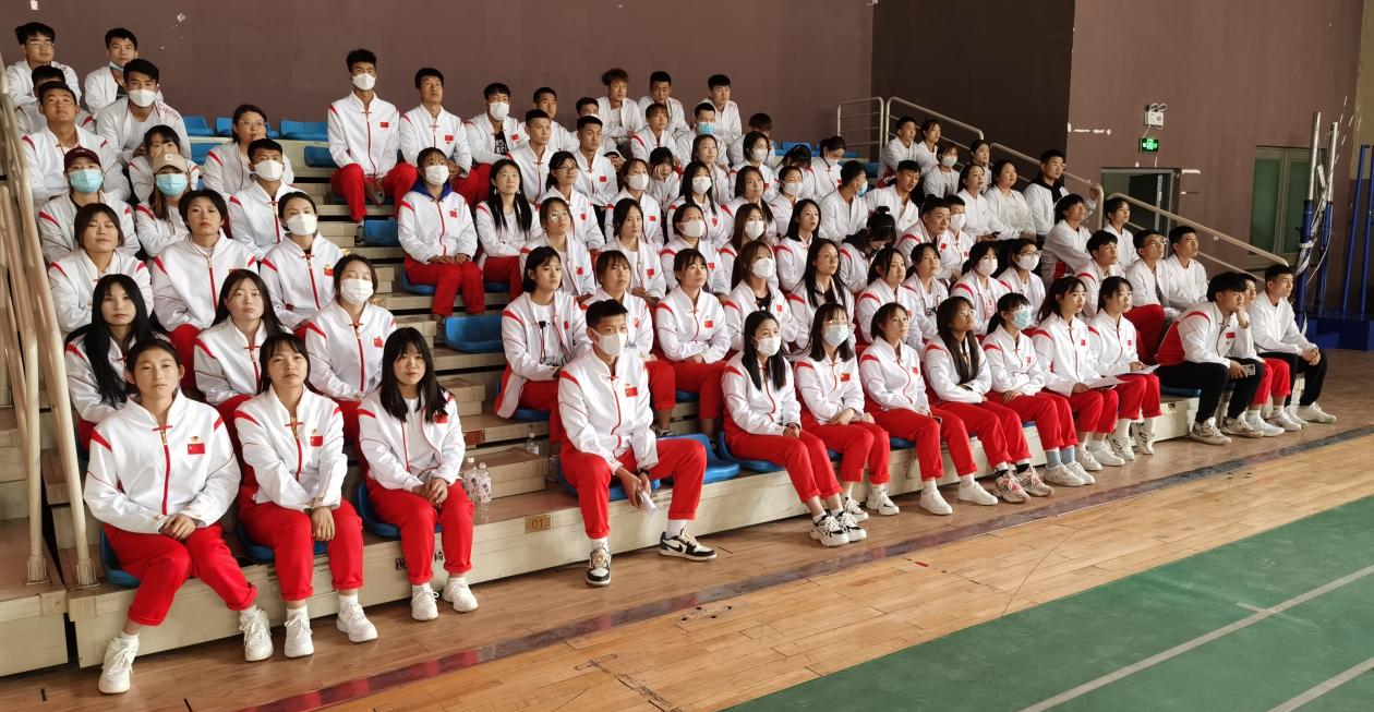 2022年4月29日我院邀请旅游与烹饪学院参加冬奥会、冬残奥会志愿者服务团队的同学们在体育馆为我院全体学生进行分享、交流活动。