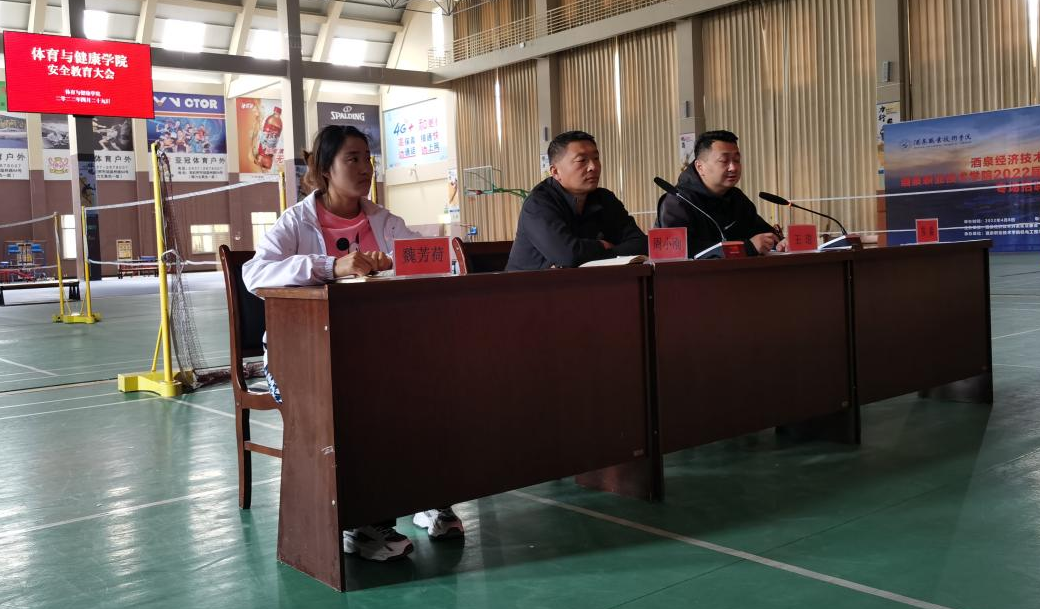 为了增强大学生安全意识,维护校园安全稳定,保证校园和谐发展,于2022年4月29日,体育与健康学院举办了安全教育大会。党支部书记周小刚,副院长王瑞及全体班主任、全院学生参加本次会议。