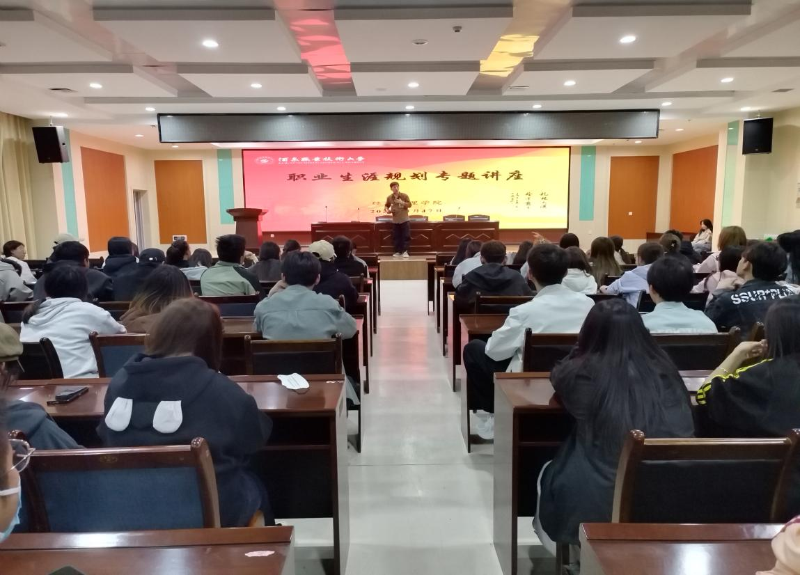 2025年4月17日,经济管理学院在图书馆四楼报告厅成功举办2023级学生职业生涯规划专题讲座,并同步开展得物公司专场招聘宣讲会。活动特邀甘肃优度贝贝教育咨询有限公司职业规划专家鱼淼老师担任主讲,吸引了全院300余名学生参与。