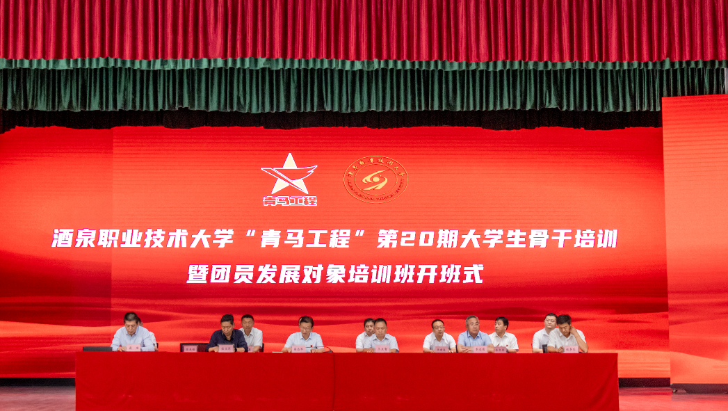 为深入学习贯彻习近平新时代中国特色社会主义思想,进一步强化青年学生思想政治引领,5月20日下午,酒泉职业技术大学隆重举行“青马工程”第二十期大学生骨干培训班暨团员发展对象培训班开班仪式。学校党委书记易志军,党委副书记王立智,党委委员、组织部部长茹立军,党委委员、宣传统战部部长李文有出席开班式。学工部、马克思主义学院、团委等部门负责人,各学院党支部副书记、团委书记及全体培训班学员参加仪式。