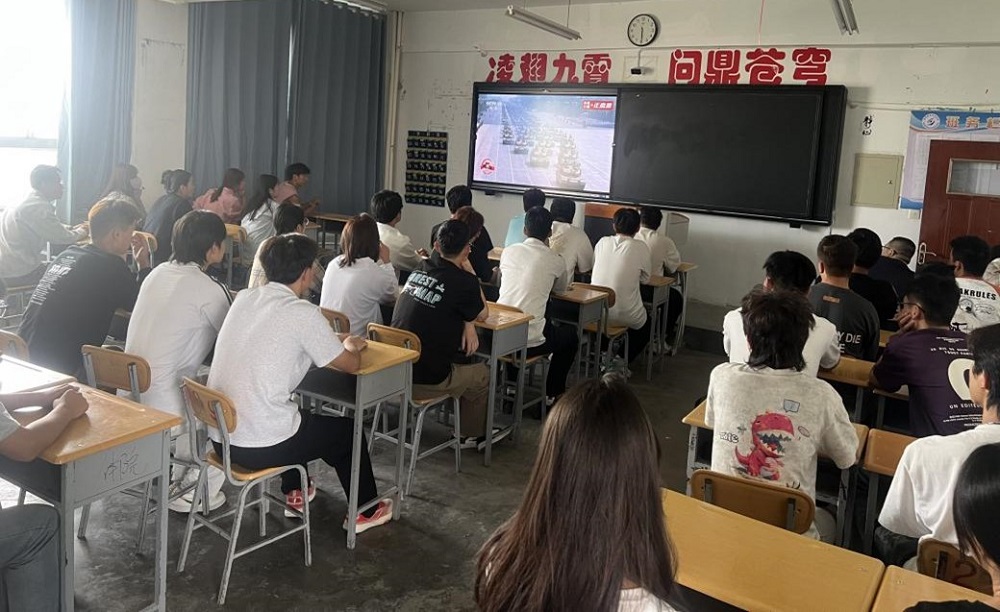 学院将此次集中收看阅兵仪式作为弘扬抗战精神、爱国主义教育和“开学第一课”的重要内容,并同步推出“三个一”学院活动:一次“胜利日”微宣讲、一次“抗战精神”主题团日、一次“行走的思政课”红色研学路线,推动爱国主义教育走深走实。