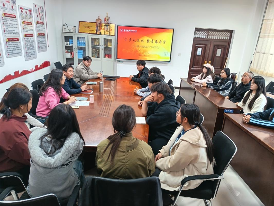 为进一步关心少数民族学生成长,促进各民族学生交流融合,10月28日下午,经济管理学院召开了以“汇多元文化,聚青春力量”为主题的2025级少数民族学生座谈会。学院院长张晓彬、副院长苏芸芸、辅导员潘海鹏及2025级全体少数民族学生参加了会议。