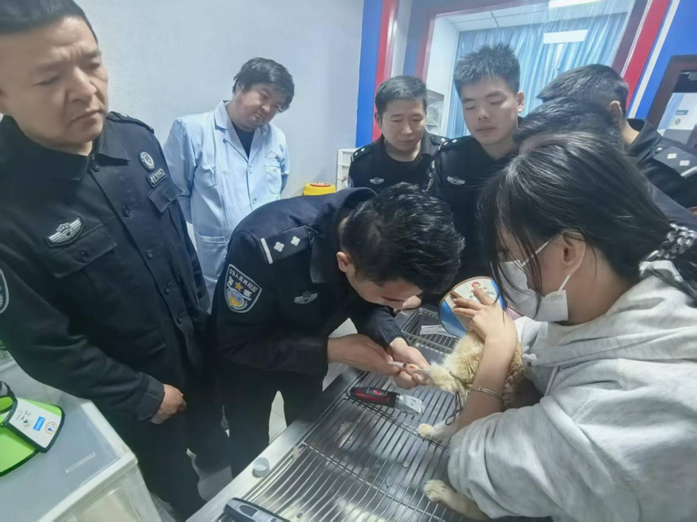 生物工程学院的曹亮老师围绕犬病防治的关键知识,从犬的整体状态评估、保定、临床检查、实验室检查、临床治疗等五个维度进行了系统且深入的理论讲解。产教融合动物医院肃州区仁爱动物医院院长赵文昌从犬只的保定、抽血、药物注射等环节进行了示范操作。随后,参训民警积极动手,依次进行实操练习,并就工作中遇到的疑难问题与专业教师展开深入交流。