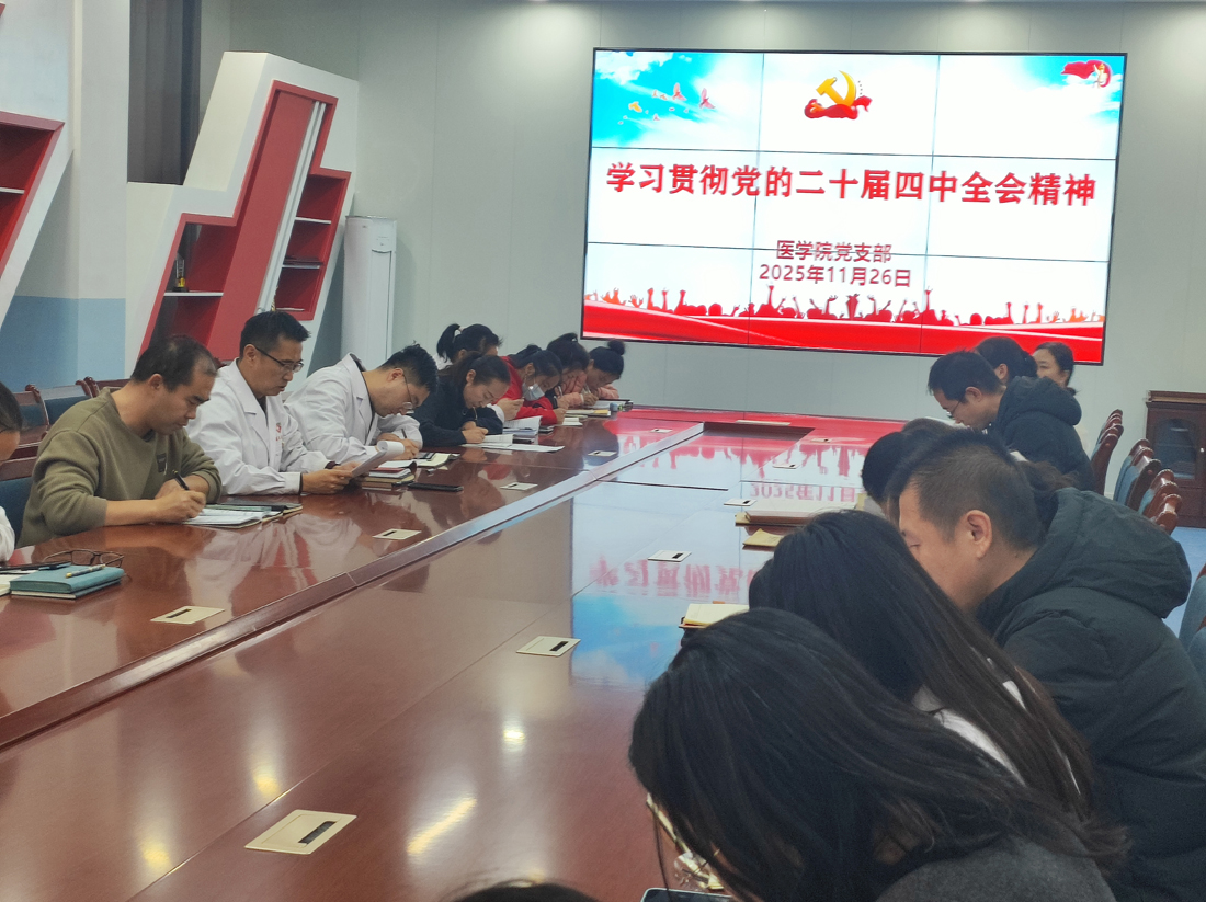 11月26日下午,医学院组织全体教职工开展党的二十届四中全会精神学习,集中学习了习近平总书记在党的二十届四中全会上所作的关于《中共中央关于制定国民经济和社会发展第十五个五年规划的建议》的说明,以及《人民日报》重要文章《准确认识和深入理解“十五五”时期的重要地位》《人民日报》系列评论员文章“七论学习贯彻党的二十届四中全会精神”,和人民网文章《引航亚太开放合作 展现大国责任担当》等重点内容。