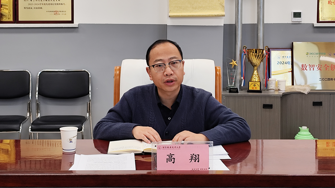 高翔作点评讲话,他指出党支部理论学习中心组学习组织有力、贴合工作实际。进一步要求强化党建引领,持续深化理论武装,将学习成果转化为育人实效与科研动力,深耕电子信息人才培养,提升实训教学质量,深化校企协同,用党的创新理论学习成果破解发展难题,为学校的发展注入数字化力量。