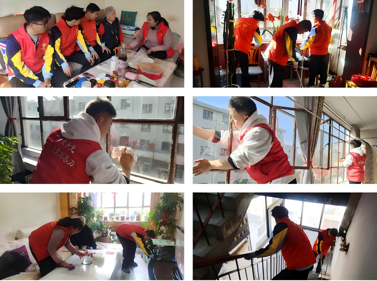 3月5日,学院组织青年志愿者服务队深入结对共建的肃州区西大街社区,在社区工作人员带领下,聚焦独居老人、空巢老人等群体,开展“一对一”关爱行动。志愿者们分组走进老人居所,不仅对门窗、地面进行全方位清洁,清理卫生死角,更以“耐心、细心、暖心”的服务态度,与老人促膝长谈,倾听奋斗故事,了解生活需求。活动中,学生结合所学知识,主动为老人检查家中设施安全,将课堂所学转化为服务民生的实际能力,用专业技能传递青春温度,赢得了社区党组织和群众的高度认可。