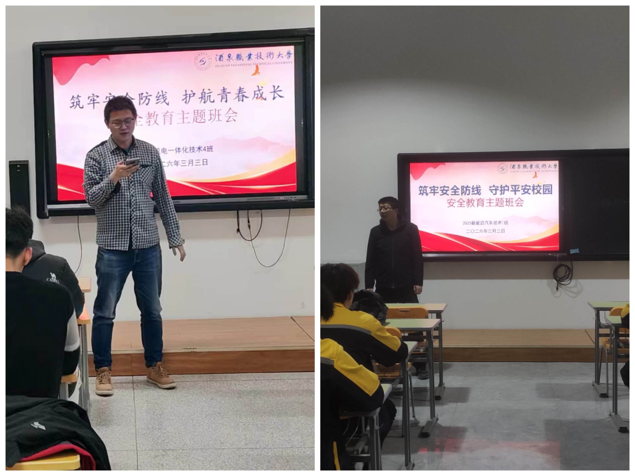 春回校园,生机盎然。为引导学生迅速调整状态,增强安全防范意识,营造平安、有序、和谐的校园氛围,3月1日至3日,机电工程学院聚焦“收心教育、安全警示、成长护航”三个模块,组织全体学生召开“开学第一课”系列班会,班会由各班班主任主持。