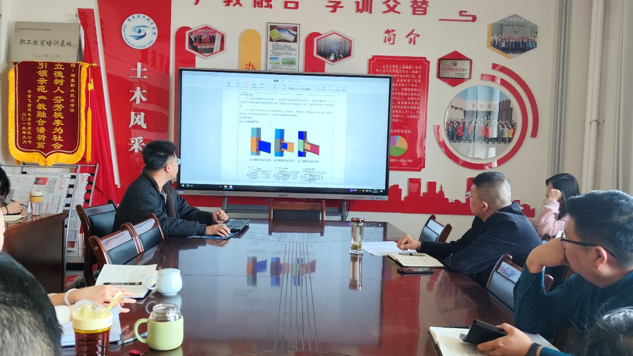 交流会上,老师们聚焦区域发展需求与学科创新,分别从研究内容、实施进展、阶段性成果、存在的问题与下一步计划等方面进行了交流。王莉老师提出“岗课赛证”融通的数智化课程体系、三级递进式实训环境及“双师双能”师资培养体系,形成了土建类专业数智化提升方案。柳治交老师提出分层内抬升卸荷式地拉锚杆支护结构设计,利用滑裂面后方稳定土体与锚索的竖向拉升作用抬升自由段上方土体,减小基坑开挖面土压力差,维持基坑稳定。何金龙老师提出冷弯薄壁型钢混凝土框架套筒式装配节点技术,通过创新连接方式突破装配式结构关键技术瓶颈,凸显了技术革新与服务社会经济发展的双重意义。
