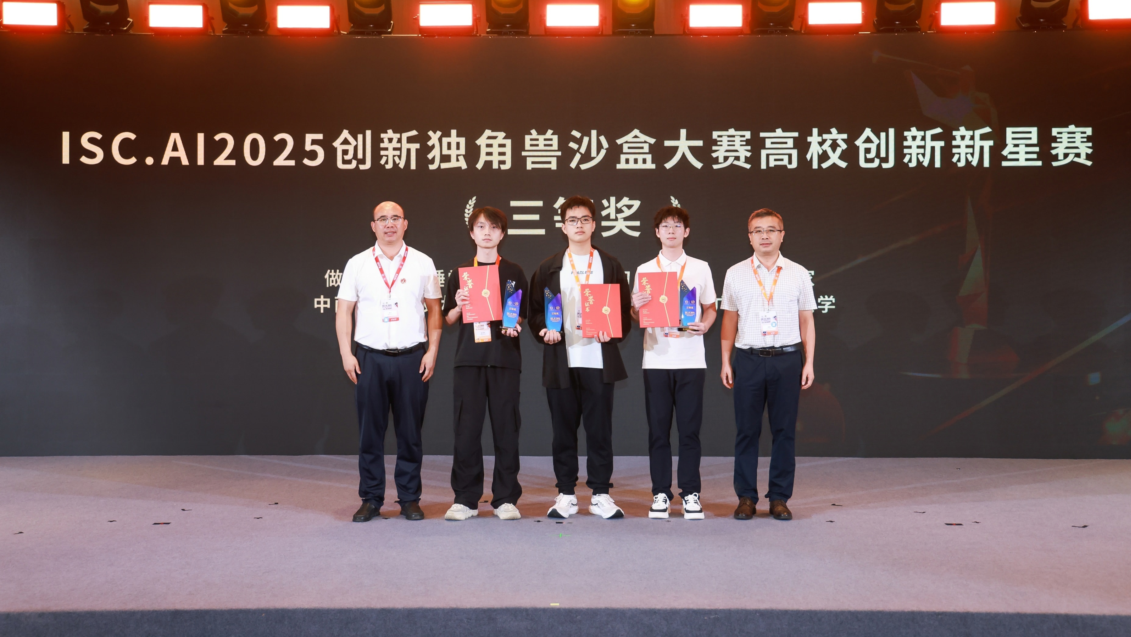 杨洁副校长为ISC.AI2025创新独角兽沙盒大赛高校创新新星赛获奖学生颁奖。