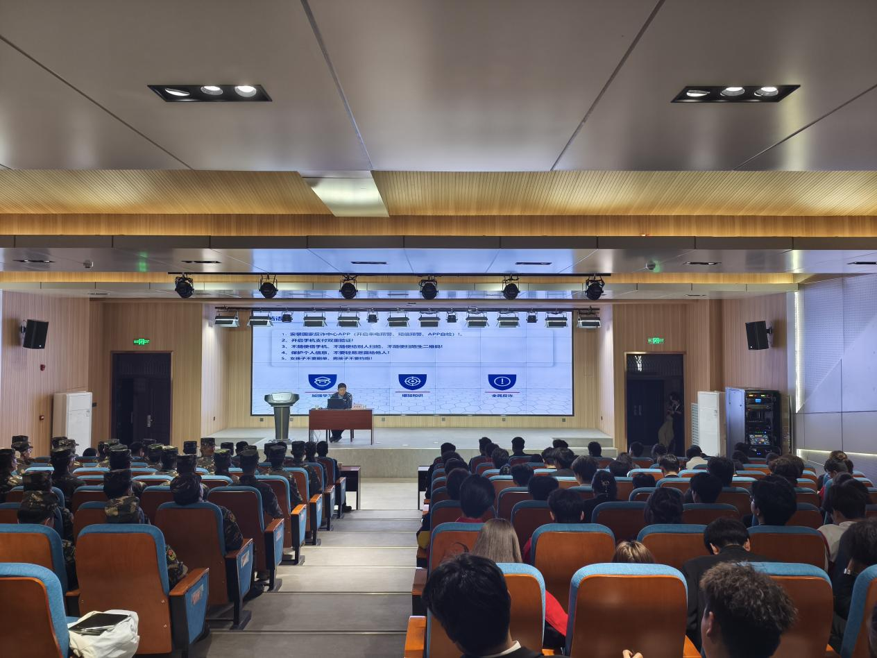 本次讲座以鲜活案例为切入,以透彻剖析为支撑,为师生上了一堂生动的法治教育课。同学们普遍表示,通过聆听讲座,对电信网络诈骗的惯用伎俩有了更为清醒的认识,今后将时刻保持警惕,坚决避免成为诈骗分子的侵害对象,自觉抵制各类违法出租出借行为。活动采取“线下主会场+线上直播”形式,实现了对全校学生的全覆盖教育,有效提升了学生的法治素养和防范能力,为深入推进平安校园建设奠定了坚实基础。(信息员:学生工作部   张嘉怡)