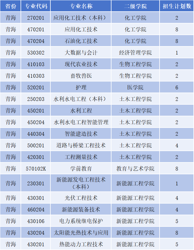 酒泉职业技术大学2025年省外普通高考招生专业及计划
